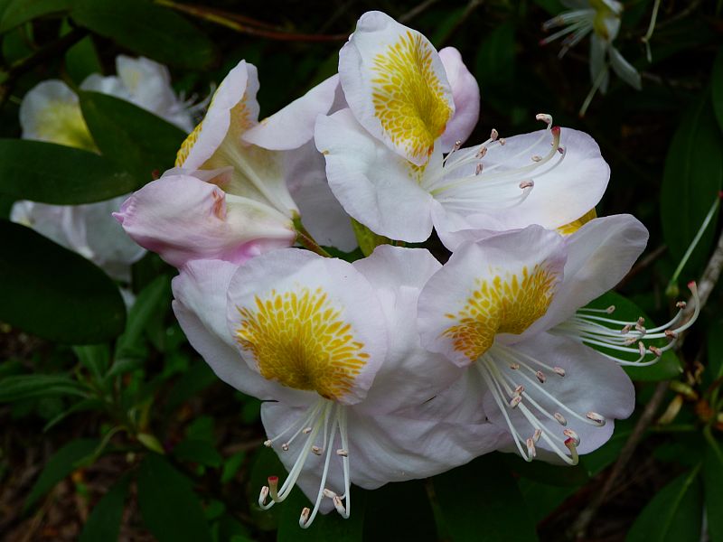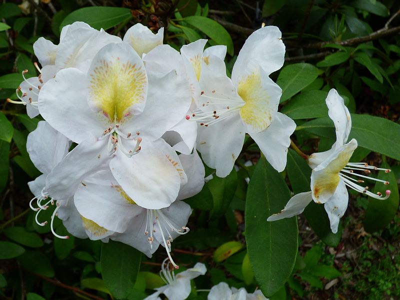 Selekcjoner: Waterer, Wielka Brytania (wprowadzenie do handlu: 1936) Pokrój: szeroki, wyprostowany, luźny Siła wzrostu: duża... po 10 latach dorasta do około 1,50 m wysokości Liście: ciemnozielone... o długości do 14 cm przy szerokości do 4,5 cm Kwiaty: w pąku delikatnie liliowe, po otwarciu białe w odcieniu kości słoniowej z początkowo wyraźnym, brązowym na żółtym tle, z czasem żółtym rysunkiem na górnym płatku... duże... zebrane po 15-17 sztuk w wierzchołkowe kwiatostany Termin kwitnienia: przełom maja i czerwca Mrozoodporność: ? Wyróżnienia: AM: RHS 1936