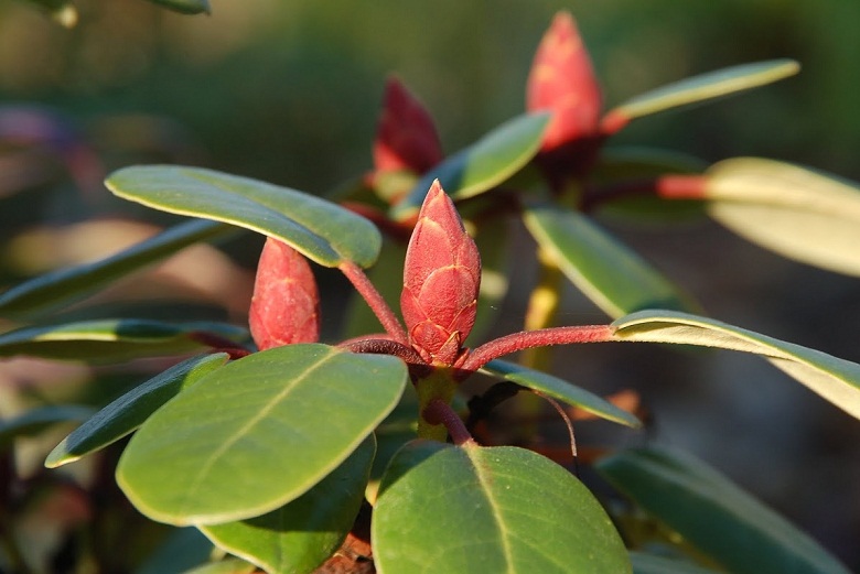 Różanecznik Irmelies rozpoczął kwitnienie, ale pogoda jest, jaka jest, więc kwiaty szybko tracą urok. Część pąków zbrązowiała, trzeba je oberwać.