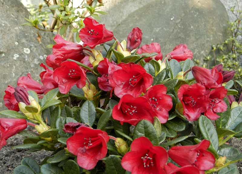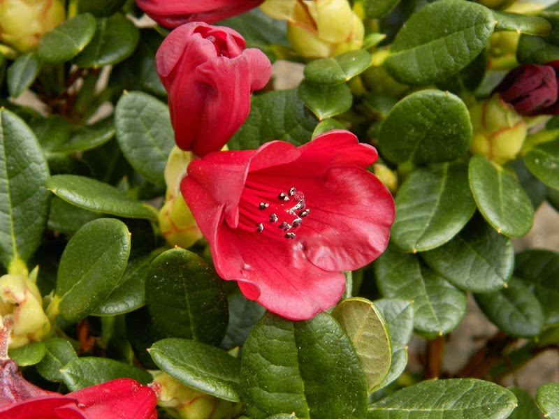 Kwiaty: w pąku wręcz czarno czerwone, po otwarciu żywoczerwone o woskowym połysku z drobnymi, nieco ciemniej zabarwionymi żyłkami.... dzwonkowate... niewielkie, średnica pojedynczego kwiatu od 3 do 3,3 cm... zebrane po około 3 sztuki w luźne, wierzchołkowe kwiatostany