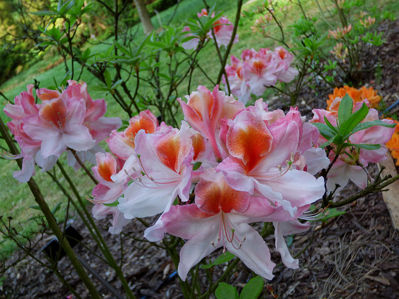 Selekcjoner: brak danych Pokrój: krzaczasty Siła wzrostu: brak danych Liście: sezonowe, jasnozielone Kwiaty: w pąku różowe, po otwarciu bladoróżowe z bardzo dużym, intensywnie pomarańczowo żółtym oczkiem rozlewającym się na trzech górnych płatkach... brzegi płatków lekko pofalowane... szerokolejkowate... duże... zebrane w kuliste, wierzchołkowe kwiatostany Termin kwitnienia: połowa maja Zapach: niewyczuwalny Mrozoodporność: brak danych