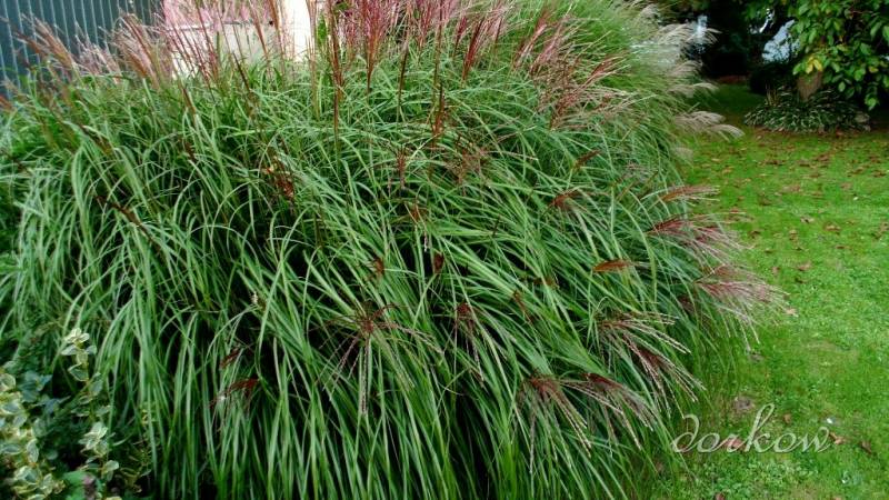 Uwagi w grupie miskantów nadaje się na pierwszy plan ze względu na kształt kępy, doskonały jako niski soliter !
