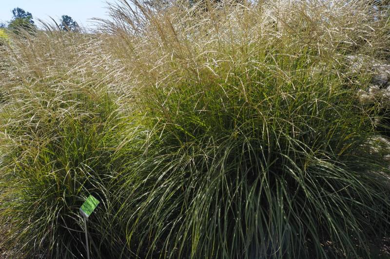 Wysokość: z kwiatostanami 100cm, sama kępa ok.70cm, odmiana niska o zwartej, kulistej budowie Liście: zielone ze srebrzystym nerwem, wąskie, krótkie i sztywne; jesienią przebarwiają się na kolor miedziano-czerwony Kwiatostany: zebrane w czerwono-brązowe wiechy (z czasem robią się srebrzysto-białe), pojawiają się licznie późnym latem Wymagania: ziemia umiarkowanie żyzna i średnio wilgotna... stanowisko słoneczne Mrozoodporność: strefa 5b