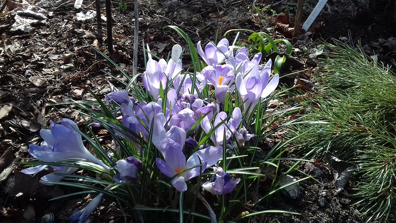 Raczej są to pojedyncze spóźnione sztuki w najbardziej zacienionych miejscach, ale jedna z odmian zdaje się teraz mieć spóźniony szczyt kwitnienia (C. chrysanthus 'Advance'). Oprócz tych, które sfotografowałem, mam jeszcze pojedyncze kwiaty 'Jeanne D'Arc', 'King of Striped', 'Sky Blue', 'Grand Maitre', 'Ard Schenk', 'Blue Pearl', 'Zenith', 'Constellation', 'Ruby Giant', 'Orange Monarch', 'Picturatus' i biflorus ssp. biflorus.