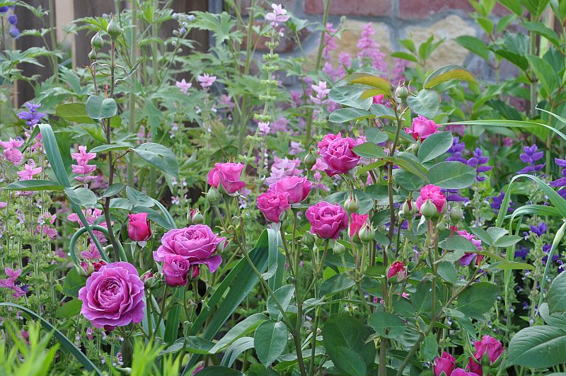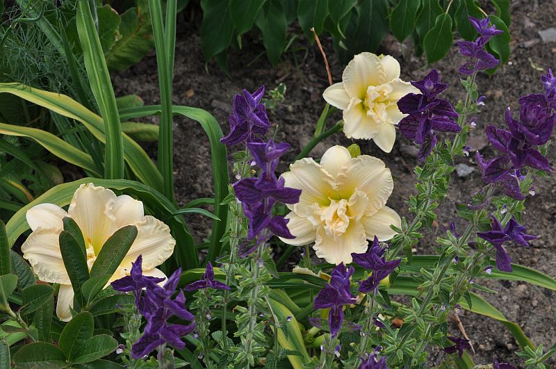 szałwia trójbarwna w ogrodzie markity, w towarzystwie liliowca
