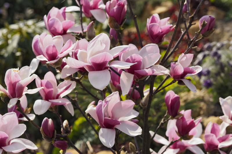 Magnolia Satisfaction czaruje elegancją dużych kwiatów, z zewnątrz mają ciemnoróżowy kolor a wewnątrz są niemal białe. Delikatnie pachną.