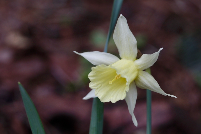 Wysokość: 25 cm. Kwiat: jasnożółta trąbka, płatki o barwie zbliżonej do kości słoniowej Kwitnienie: kwiecień Wymagania: stanowisko wiosną słoneczne, później może być półcieniste, ziemia ogrodowa z dodatkiem próchnicy, przepuszczalna, bez zastoin wodnych Zapach: