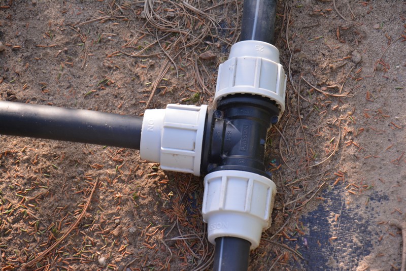 Jako, że wydatek wody jest tu mniejszy, niż w przypadku podlewania ogrodu i zdecydowanie warto to zrobić na oddzielnym obwodzie, to z powodzeniem można tu wykorzystać nieco cieńszą rurę. Ja dałem fi 16
