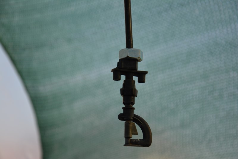 Jako, że tunel mam szeroki na 5 metrów, to zaplanowałem dwie linie podwieszane, ale widzę, że spokojnie starczyłaby jedna. Spryskiwacze rozwieszone są co 150 cm. Wkładki (wirniki) podlewające można zamienić na zamgławiające (np. do ukorzeniania roślin). Ich koszt jest identyczny, a wymiana trwa 10 sekund.