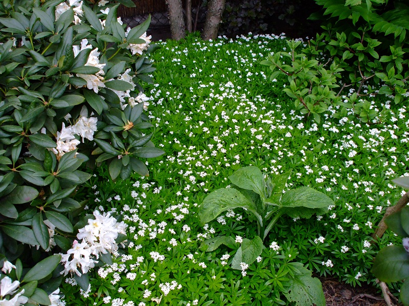 Na tej rabacie nie ma azalek. Są tam berberysy, bergenie a to białe to jakaś bylina (nie pamiętam nazwy )