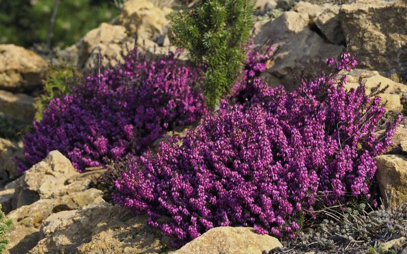 Dzisiaj na skalniaku było całkiem kolorowo, zakwitło trochę roślin cebulowych, a i wrzośce nadal kwitną . Może nie są to rośliny typowo skalne, ale w tym roku do ogrodów skalnych właśnie wrzośce polecam