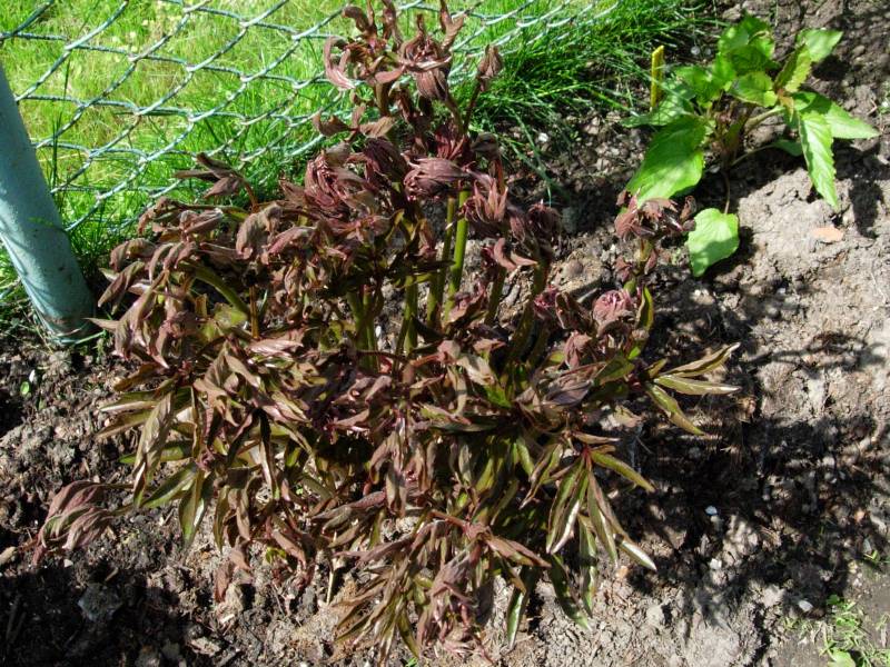 Teraz kilka słów o peoniach, bo lada chwila i będzie ich czas. Zakwitnie mi taka jedna, całkiem nowa nieznajoma. No i jeszcze kilka takich, o których wiem jak kwitną. Poza tym w tamtym roku za późno zauważyłam zabójczą dla pączków bliskość korzeni bukszpanu. W tym roku już od strony peonii korzenie podcięte – niech szuka wody i jedzenia w innym kierunku