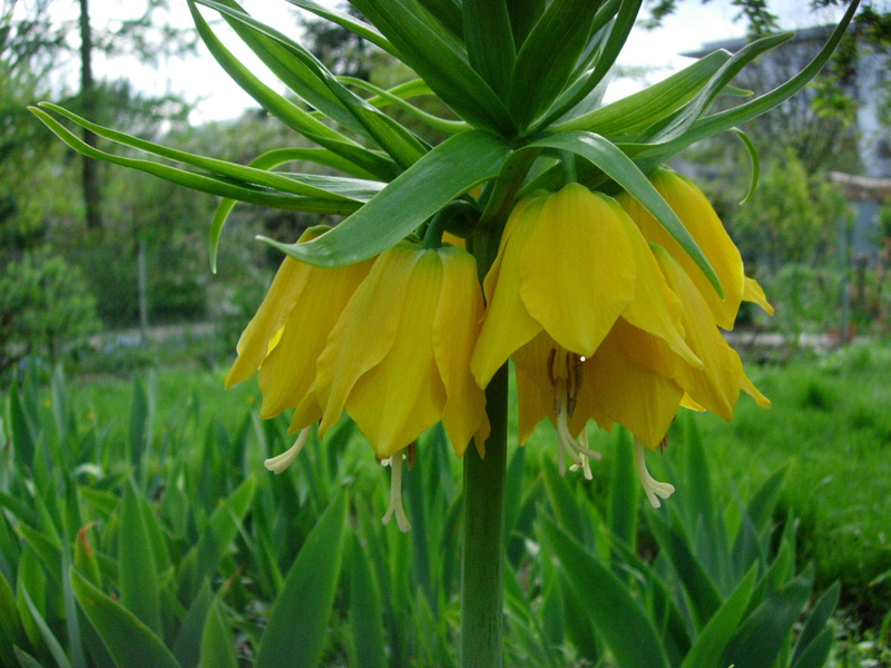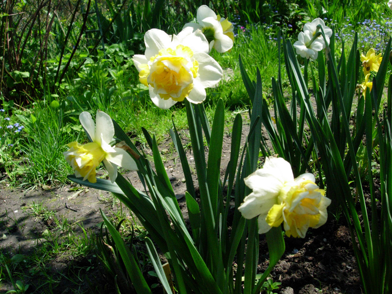 Tymczasem wiosną – proszę bardzo. Rośnie nawet ten, który w tamtym roku stracił kła w transporcie (ale jeszcze w tym roku nie zakwitnie). Natomiast cała reszta – większość po dwa pędy i stoją prosto jak żołnierze na warcie honorowej.