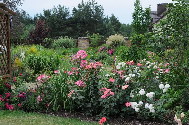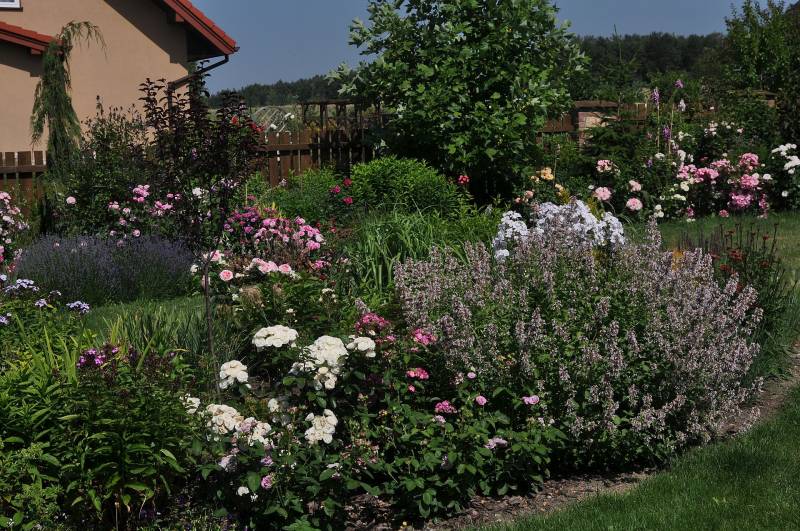 . Ale prawie tyle samo liliowców i floksów, a niewiele mniej lilii, więc może róże jakoś nie wybijają się na pierwszy plan