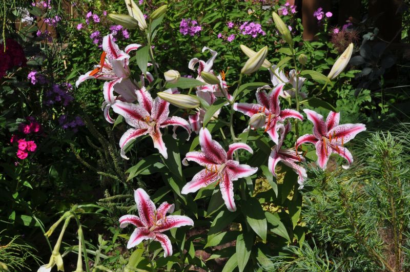 Dwa floksy maculata przekwitnięte, no trudno, ale wiechowate też jakieś słabiutkie, 'Sweet Summer Candy' jednopędowy