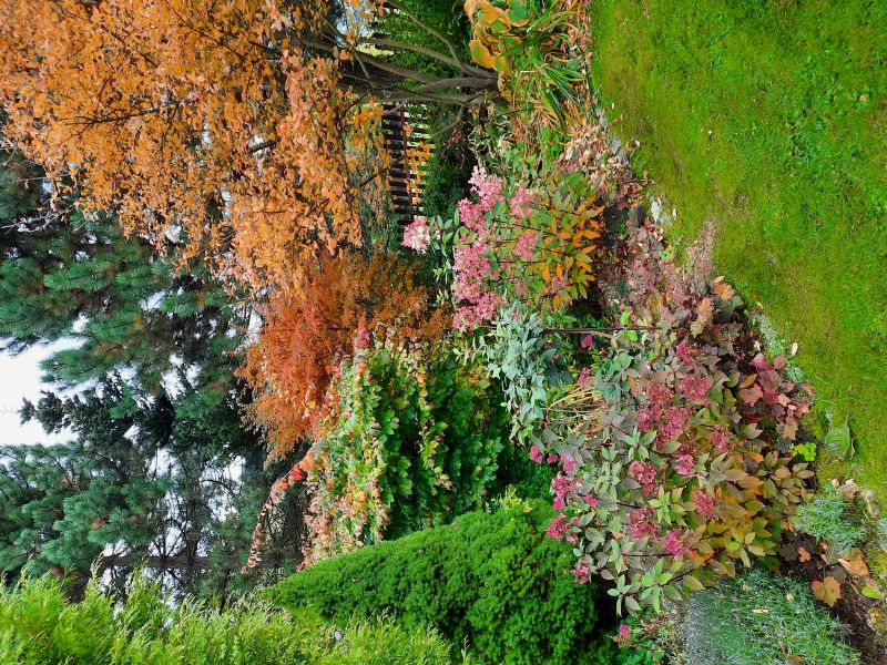 Latem ogród pięknie kolorowy, ale jak widać i teraz, po mrozach, nadal tak jest.