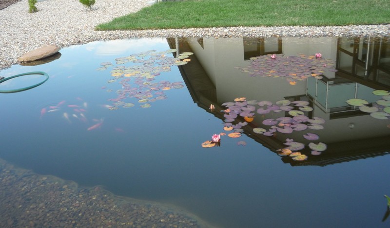 I staw z tak czystą wodą ,że widać odbicie budynku.