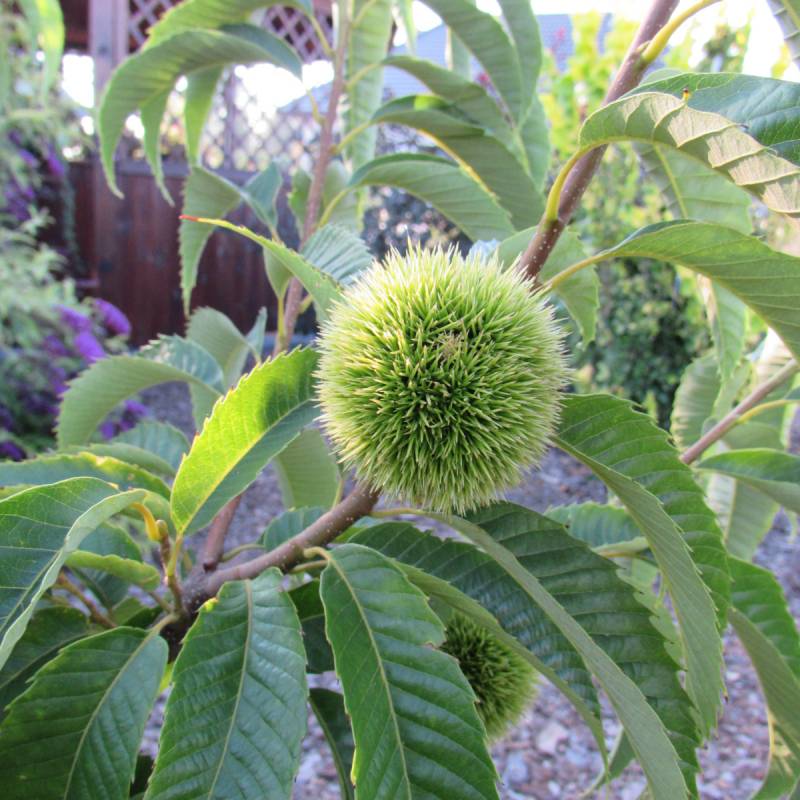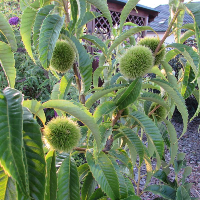 Natomiast, te śmieszne kulki - to owoce kasztana jadalnego ( Castanea sativa )