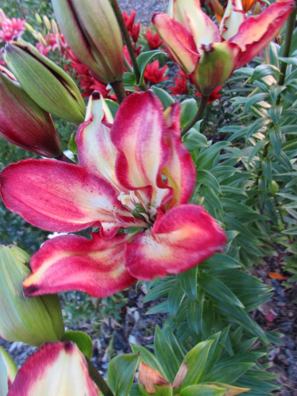 Hanuś rośliny nadspodziewanie szybko wykaraskały się po gradobiciu, nie licząc połamanych konarów i gałęzi. Lilie jakby chciały zatrzeć to złe wrażenie, jakie sprawiał ogród - oszalały po prostu, a już Cassablanca przeszła samą siebie.........................