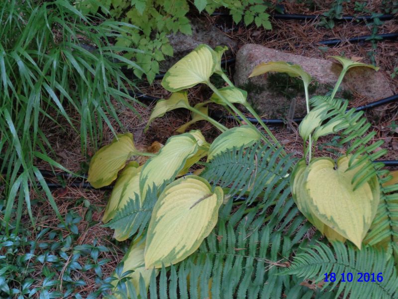 : pokazaną Green Spice i jeszcze Ring of Fire /też jest właściwie zielona/. Nie wiem, czy Cię to pocieszy, ale też wydaję mnóstwo na korę. W tym roku było marnie z gałęziami do mielenia. Mam wielką nadzieję, że następny sezon będzie lepszy. Igły wysuszone, zapakowane w worki, czekają w pogotowiu, wtedy będą chronić paproty, hosty, lilie i nóżki rodków. Jeżeli wystarczy, opatulę też moje kwitnące bylinki. Mam też w zapasie kilka worków kory, gdyby zima chciała nadrabiać zaległości z poprzednich lat