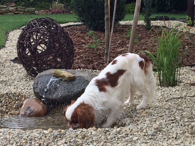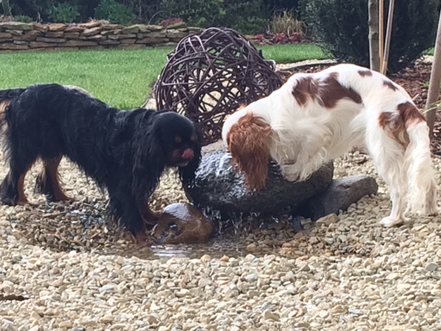 Dziś w ciągu dnia pogoda pięknie dopisała, siedzieliśmy sobie na tarasie, ciurkadełko chlupotało, psiaki co chwile piły..