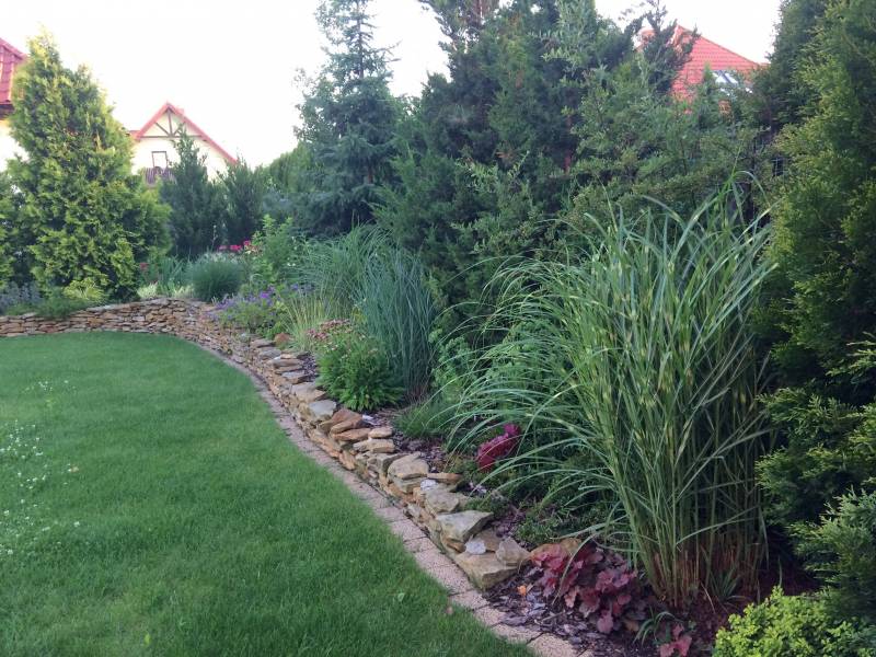 Z drobnych zmian..pojawiła się nowa trawa nad ciurkadełkiem.. Hakonki rosły na widoku i ciągle były podbryzane przez moje dwie kozy.. Przesadziłam je głębiej, żeby tak nie kusiły, a w ich miejsce pojawiła się molinia o dzwięznym imieniu Edit Dudszus