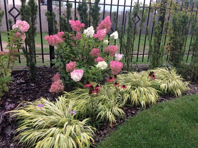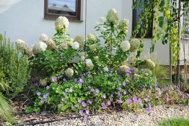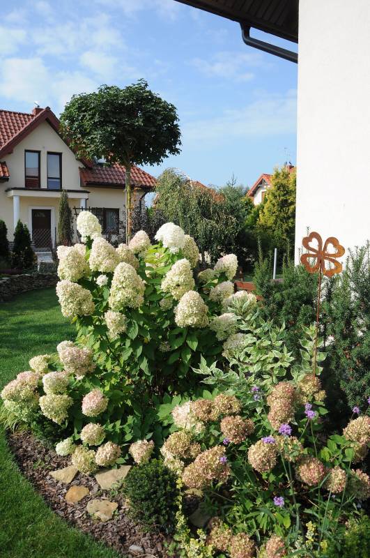 będzie fajnie, jak Limelighty w głębi tarasu, pod oknem, podrosną tak okazale, jak te na skraju.