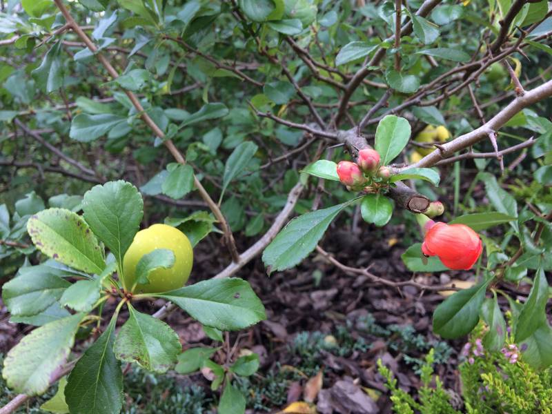 pigwowiec też oszalał- owocuje..i kwitnie..