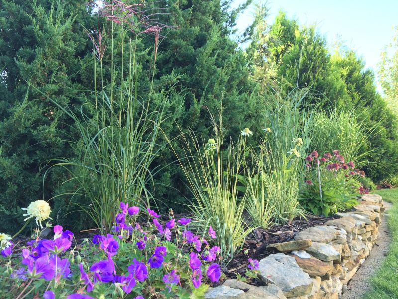 Nastąpiła tu kluczowa zmiana 2smiech Jedną z molinii przesunęłam o 10 cm.. środku dosadziłam niedawno dokupioną 3cią sztukę...i do kompletu jeżówkę Milkshake. Rosła jedna, ale łyso było, więc są dwie. Może wydaje się, że za duże odstępy- zostawiam jednak jeżówkom miejsce, a i miskant tuż obok potrzebuje trochę przestrzeni