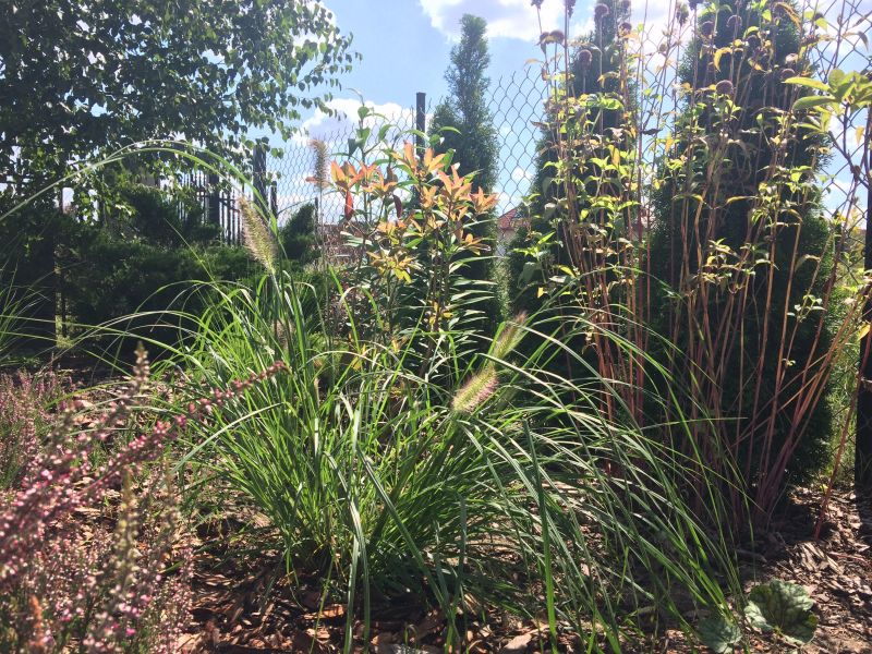 Wiedziałam, że miskanty późno startują i liczyłam się z tym- nie potrzebowałam nic zimozielonego tylko jakiś miły akcent.. Skoro jednak Helgi dorastaja mi do kolan, to trudno nazwać to żywopłotem.
