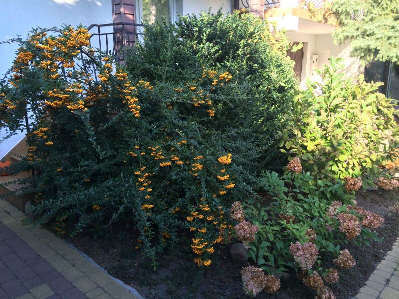 W ogóle to przechadzam się dookoła domu i zachwycam wszystkim- bardzo zadowolona jestem z roślinnych decyzji w tym roku- czegoś się pozbyłam, robiąc miejsce na inne, bliższe sercu rośliny. Cały ten rodkowo-grabowo-palmowy zakątek to wiosenne wycięcie jałowców kolumnowych, na które zasadzałam się już 2 lata, a muratorowa budowa ogrodzenia jedynie pomogła w podjęciu decyzji. Zresztą przez zimę zdecydowałam ostatecznie, a wiosną ekipa z Muratora była mocno zaskoczona, jak poleciłam karczowanie iglaków, żeby płotek łatwiej się stawiało. Kilka razy się upewniali, czy jestem pewna, że mają ciąć..a ja już w grudniu miałam graba wybranego