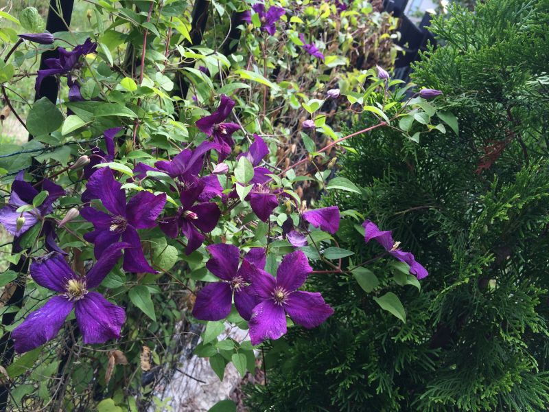 Trzmielina miała iść na ogrodzenie od północy i wspinać się. Trochę nie dowierzałam, że zrobi to odpowiednio szybko i dość sceptycznie podchodziłam do tego pomysłu. Przęsła do zasłonięcia szybko, a nie za kilka lat.