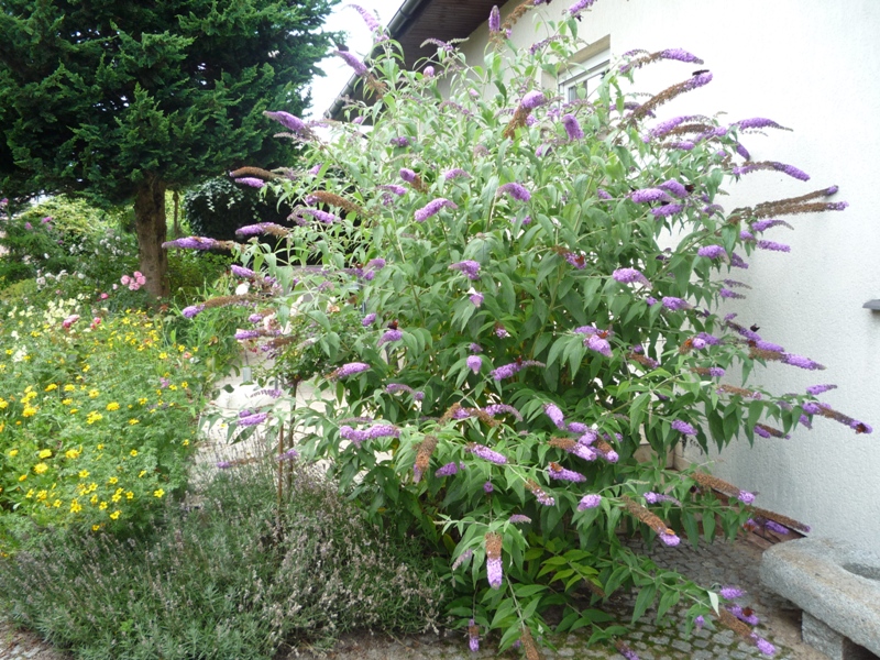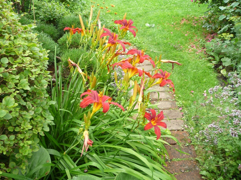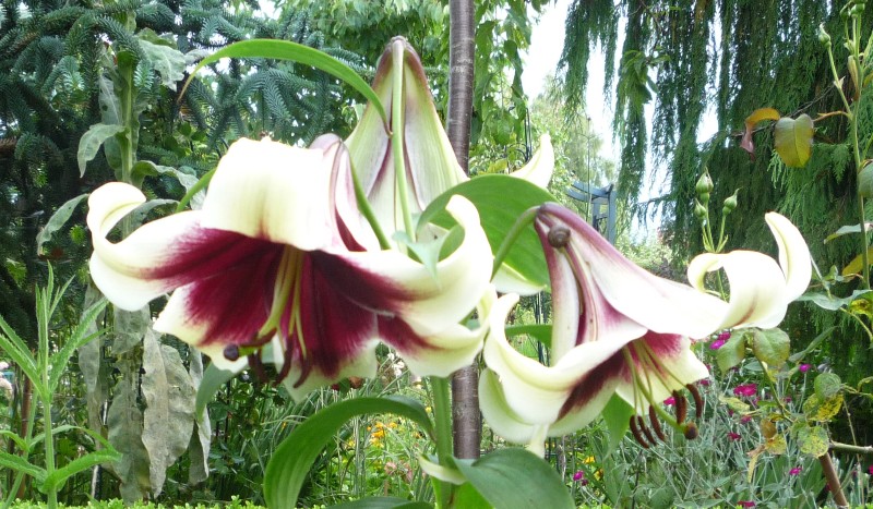 Werbena wysiewa się w kostce brukowej i dodatkowo jest dekoracją . Wiosną w skrzynkach sadzę drobniutkie bratki ,które po przekwitnięciu usuwam a Eukomis rośnie już dojesieni