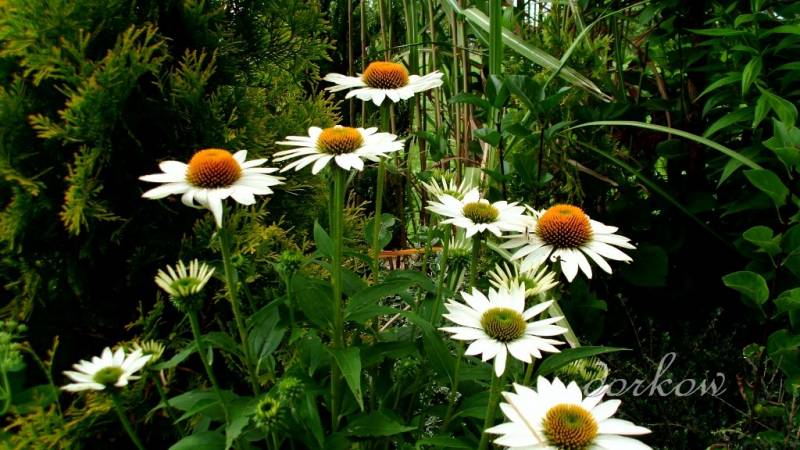 Pogoda u mnie dobra. Nie jest zbyt gorąco, deszcz pada od czasu do czasu. Roślinom to odpowiada. Choć w ogrodzie czuć już jesień i to bardzo. Zwłaszcza po roślinach. Kwitną już zawilce, kwitną hortensje bukietowe, trawy zaczynają pokazywać swoje kłosy, zwłaszcza te wczesne. Hosty przekwitają, zawiązują nasiona. Kolejne zakwitają. Nawet motyle zaczęły przylatywać, bo kwitnie budleja..
