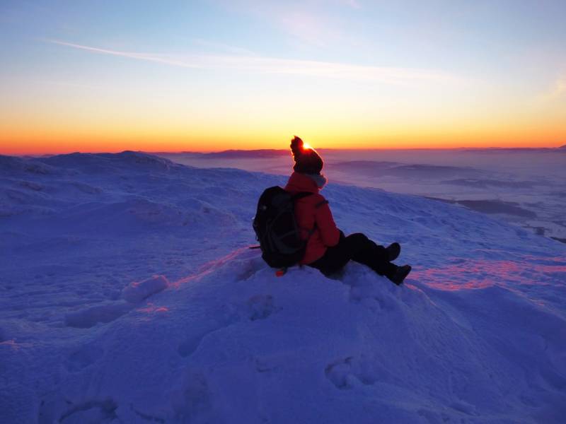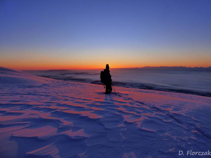 Od Kępy dzień zaczął się budzić i jest to najpiękniejsze zjawisko na ziemi,przejrzystość powietrza niesamowita przed szczytem zaczęło wiać Tatry na wyciągnięcie reki my podziwiamy pierwsze wynurzenie słońca a wszyscy mega turysci tak zmarzli na szczycie ze zamiast podziwiać to,po co przyszli to zajęci byli rozgrzewka