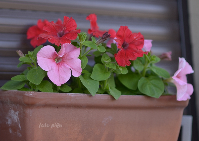 Miłko, to zwykła balkonowa skrzynka, ale myślę żeby ją jakimiś deskami obłożyć think: , a w skrzynce pelargonia przechowana przez zimę i dokupiona sadzonka uczepu. pierwszy raz trafiłam na taki wielobarwny :)