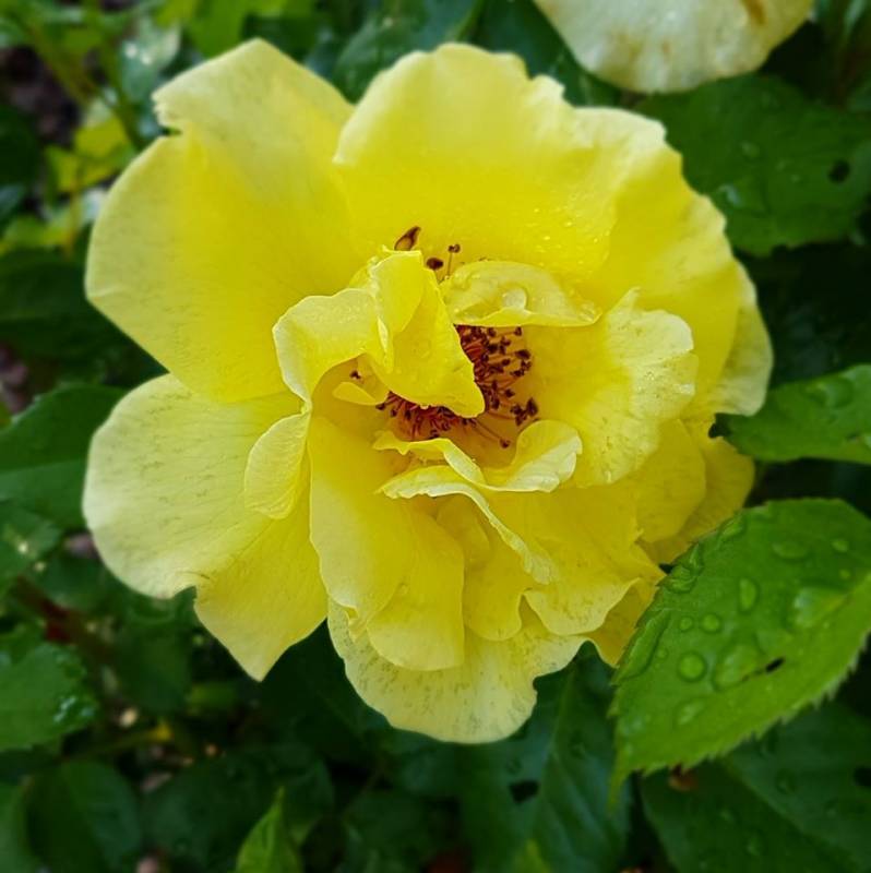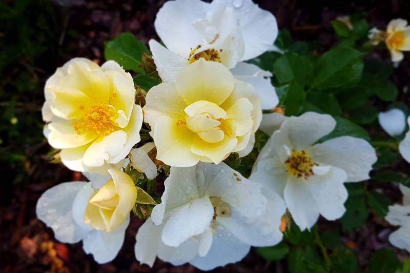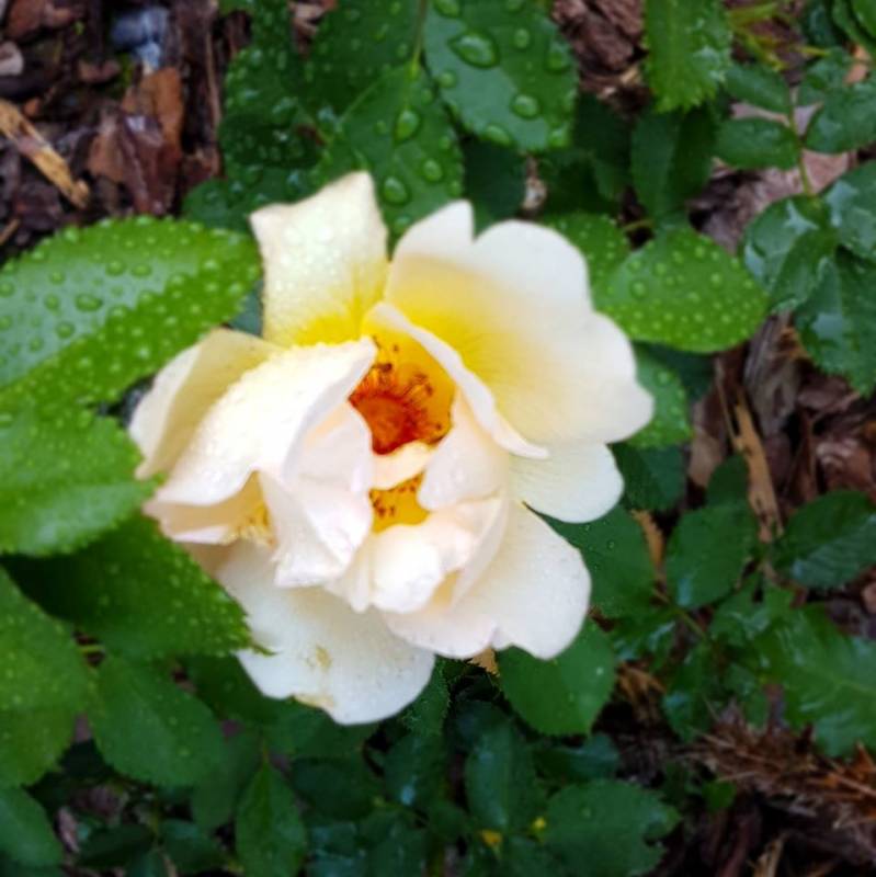 Keros jest u mnie od wiosny, sadzony z gołym korzeniem, więc na razie jest malusieńki. Kupiony we Floribundzie. To Róża Harknessa, podają rozmiar 0,7 - 1,0 m, zdrowotność na 5 gwiazdek i zimotrwałość na 4. Z moich obserwacji wynika, że faktycznie liście ma bardzo zdrowe, nawet lepsze niż Pastella, która przecież jest niezwykle wytrzymała, a już łapie jakieś plamy na dolnych liściach. Oczywiście kwiaty ma zupełne inne niż Pastella, ale mnie zachwycają. Na początku pręciki są żółte, przekwitając robią się brązowe? czarne? - w każdym razie ciemne.