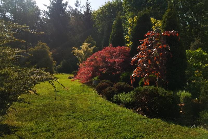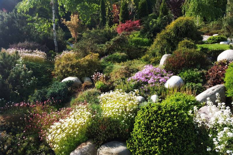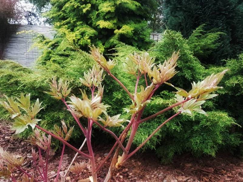 Tnę, sprzątam i sprzątam, i wycinam, bo mróz zniszczył mnóstwo wrzosów i wrzośców - już wywaliłam blisko 20 a to jeszcze nie koniec, wymarzł nawet ubiorek wiecznie zielony, a przecież taki odporny, padły wszystkie turzyce "Ogień Prerii" w ilości 15 sztuk... przesadzam i dosadzam... zmieniam koncepcje. Wywaliłam 4 berberysy (bez większego żalu) no i zostało puste miejsce. Dzięki wycince wreszcie się odsłonił dereń kwiecisty rosnący pod płotem, no i zyskałam dużo miejsca na byliny. W planie jest rabata w odcieniach niebieskiego i fioletu i różowości, choć w tle będą rosły dwie pnące róże Moonlight i Maigold, ale one mają różowe obrzeża płatków, więc może jakoś to się wpasuje., tym bardziej, że pod płotem rosną clematisy "made in LIdl" w kolorze fioletowym, więc może przełamią tę żółć?