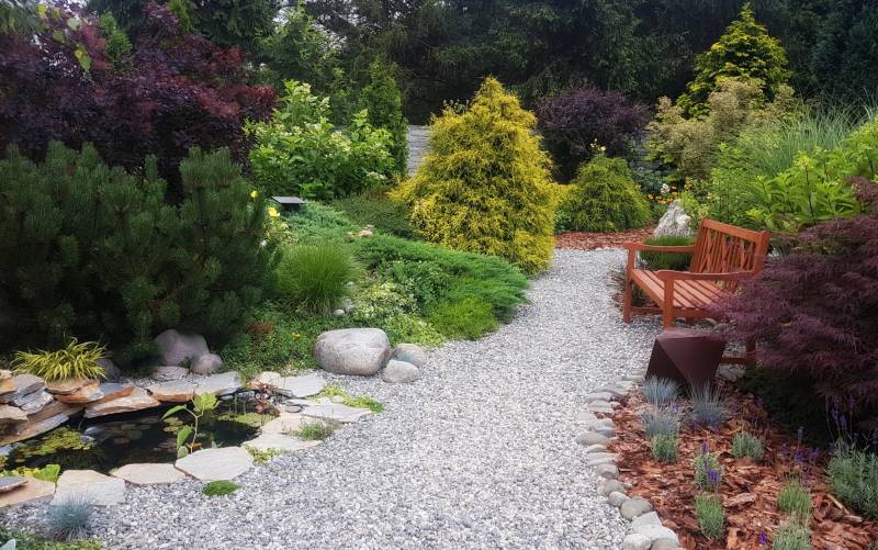 Sercem ogrodu jest wielki staw, do którego wpływa chyba ze 150 maleńkich strumyczków i cieków. Jest niemożliwie naturalistyczny, miejscami wygląda na zaniedbany, ale nic bardziej mylnego - nawet rośliny "spontaniczne" są tu pod kontrolą