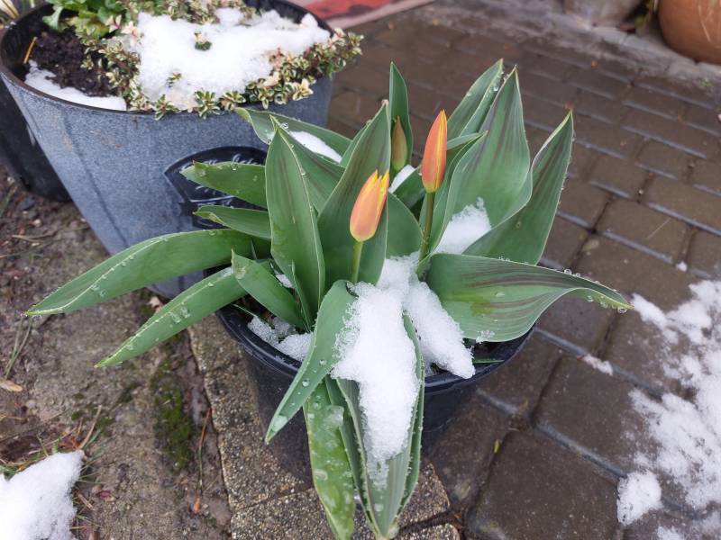 U Ciebie może śnieg, ale też kwitną tulipany wiec przed śniegiem musiało być ciepło. U nas chłodne noce. mroźne poranki. Nawet w dzień, jak jest słońce, to nie przekracza 10stC. Słonka życzę!