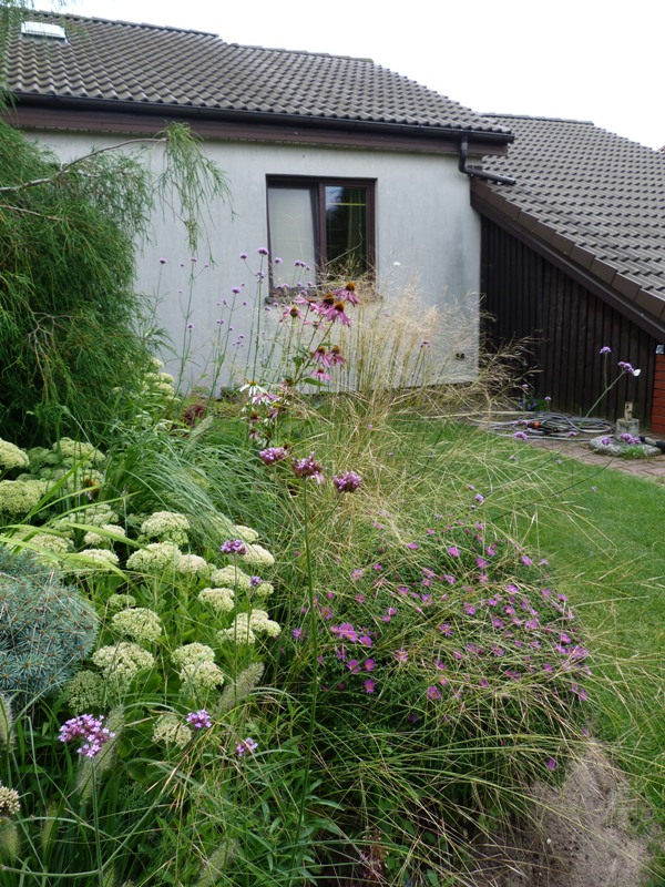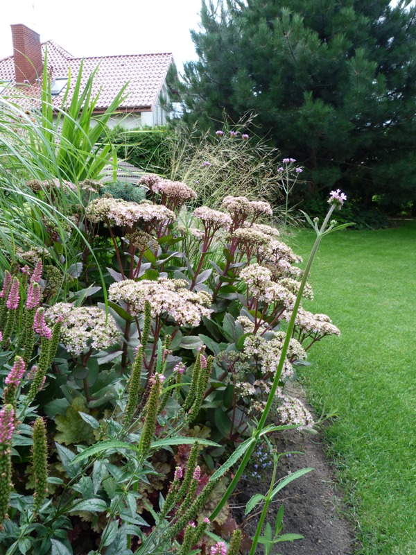 Aniu, dziękuję za pomysł, który chyba podświadomie zaczęłam już wprowadzać. Nie jestem w stanie przesadzić roślin tak, żeby zrobić miejsce na dla dużej grupy, ale mam miejsce na posadzenie jednej rośliny. Dlatego sadzę w te wolne miejsca te same rośliny. Tak posadziłam już krwawnicę, szałwie, kocimiętki, kłosowce i kilka innych roślin. Może jak sie rozrosną będą bardziej widoczne i będzie to lepiej wyglądało. Musze też pomysleć nad roslinami, które będa kwitły po przekwitnięciu floksów. Chyba padnie na jeżówki.