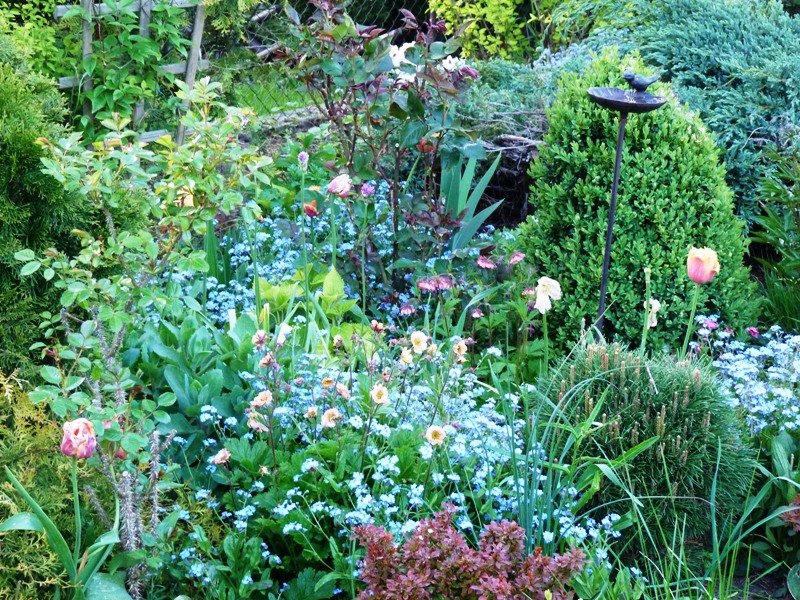 Krysiu, staram się sadzić roślny tak, żeby ogród był atrakcyjny cały sezon. Przez to jest przeładowany, bałaganiarski, ale osiągnęłam efekt jaki zamierzałam. Komus nie urządziłabym takiego ogrodu. Najśmieszniejsze jest to, że innym tworzę bardzo stonowane rabatki. Totalna schizofrenia.