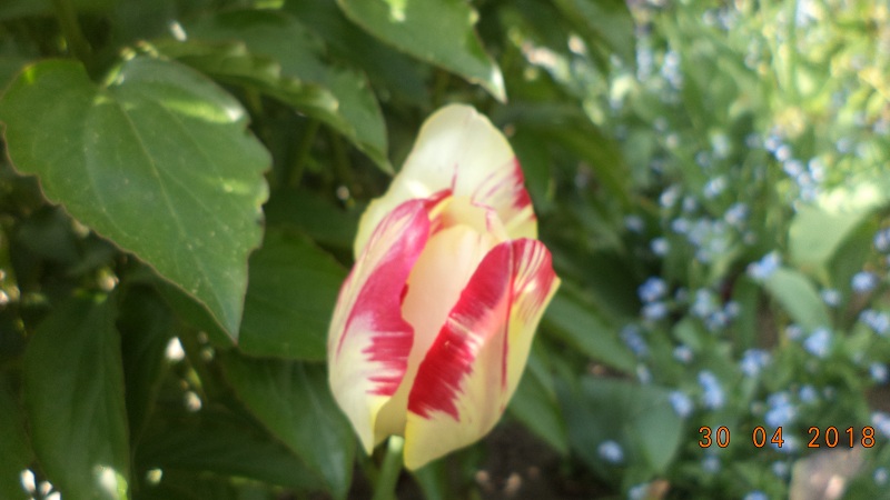 Za to w miejscu gdzie jest zawsze zbita, gliniasta ziemia rósł sobie jakiś przypadkowy jeden tulipanek strzępiasty,