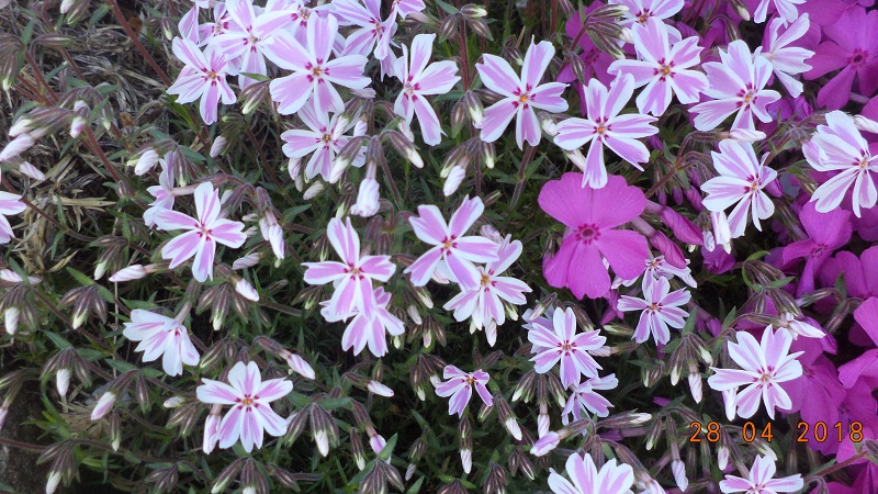 który w tym roku miał aż 6 kwiatów, inny właśnie ten zwykły, czerwony podobnie, z jednego rozrósł się do pokażnej kępy.