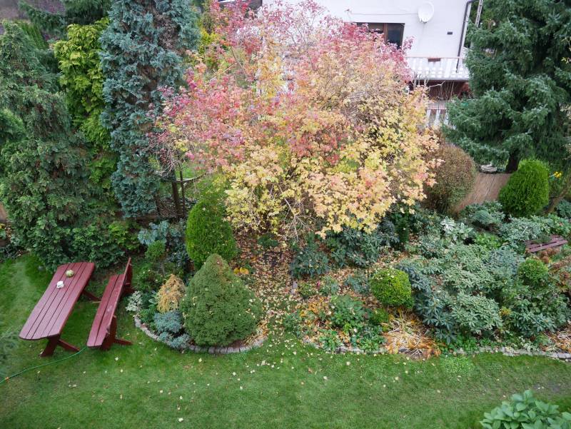 Dzisiaj tylko chwilę pograbiłam liście bo taki ponury dzień był ,że nic się nie chciało ....za to wieczorem na świerku wypatrzyłam sowę