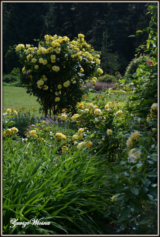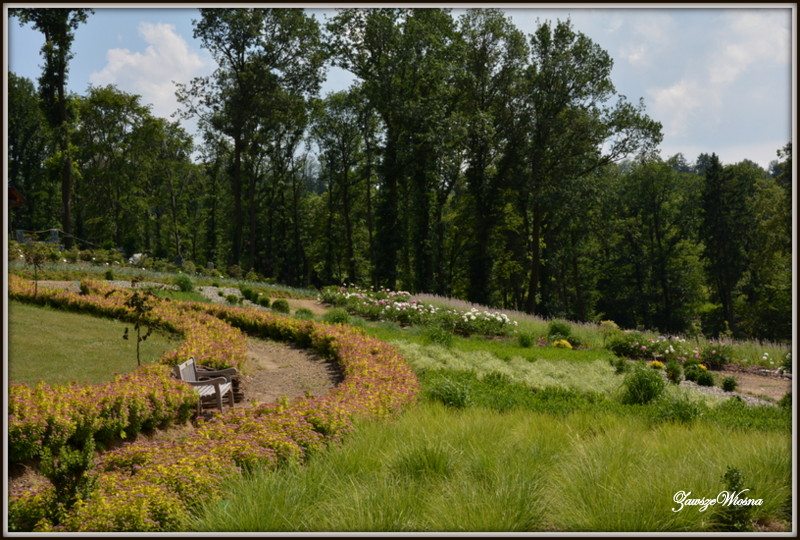 Czerwiec nie jest najlepszym miesiącem na zwiedzanie i podziwianie. Różaneczniki juz przekwitły , liliowce jeszcze nie zaczęły. Byłam tuż przed świętem piwonii - niestety piwonie w tym roku zakwitły wcześniej. Ale taki spacer, kiedy niby nic się nie dzieje też ma swoje uroki. Można spojrzeć na znane miejsca z innej perspektywy. I ten luz, spokój, żadnych tłumów