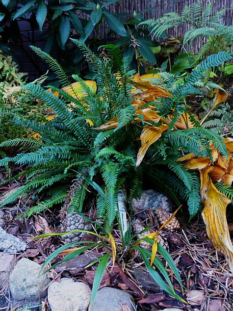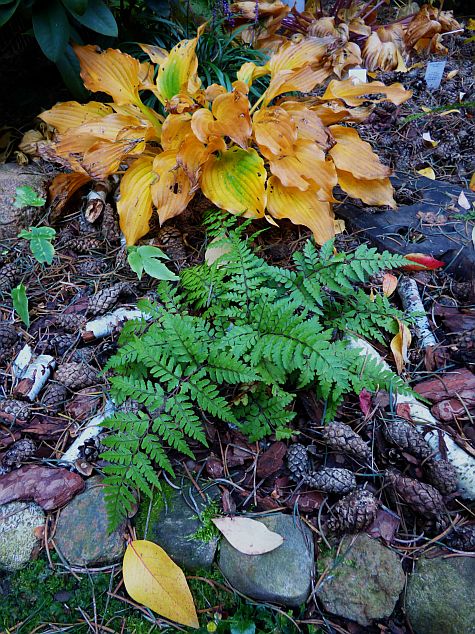 Części host już usunęłam liście i regenerują się po sezonie pod kołderką z kory i igliwia... część jeszcze się żółci w lepszej bądź gorszej formie.