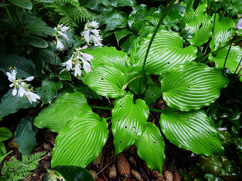 to pytam się, jak wyprosić gąsienice, które zwykle ujawniają się po fakcie swego obżarstwa? Może i Twoją 'Abiquę Drinking Gourd' nadżarła gąsienica... u mnie jednego roku dobrały się do 'Thunderbolta', innego do 'June' i 'Blue Ivory'... a to wszystko hosty ślimakoodporne... kolejnego po powrocie z wakacji zobaczyłam dziury we 'Fragrant Bouquet'... to nie są miłe widoki