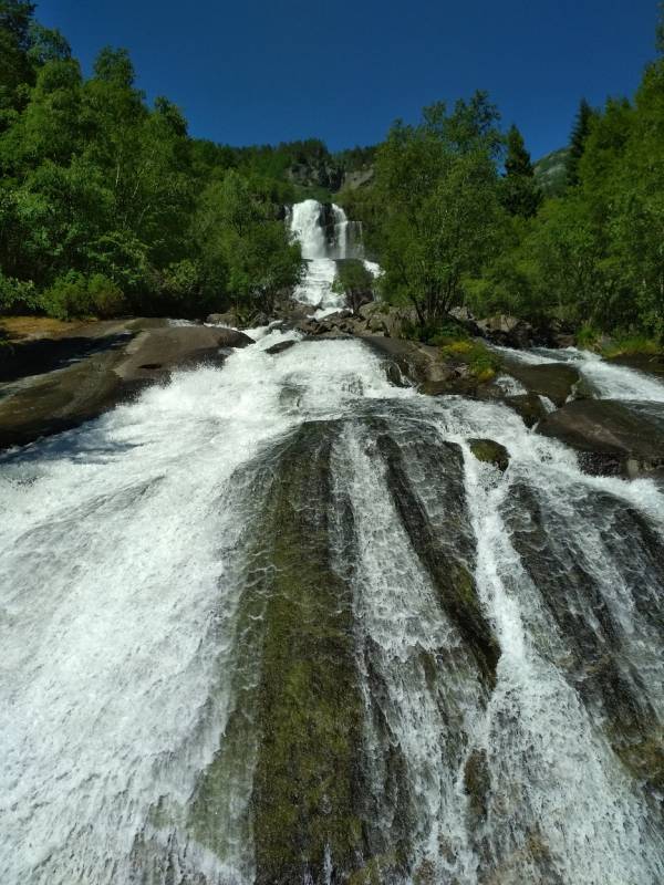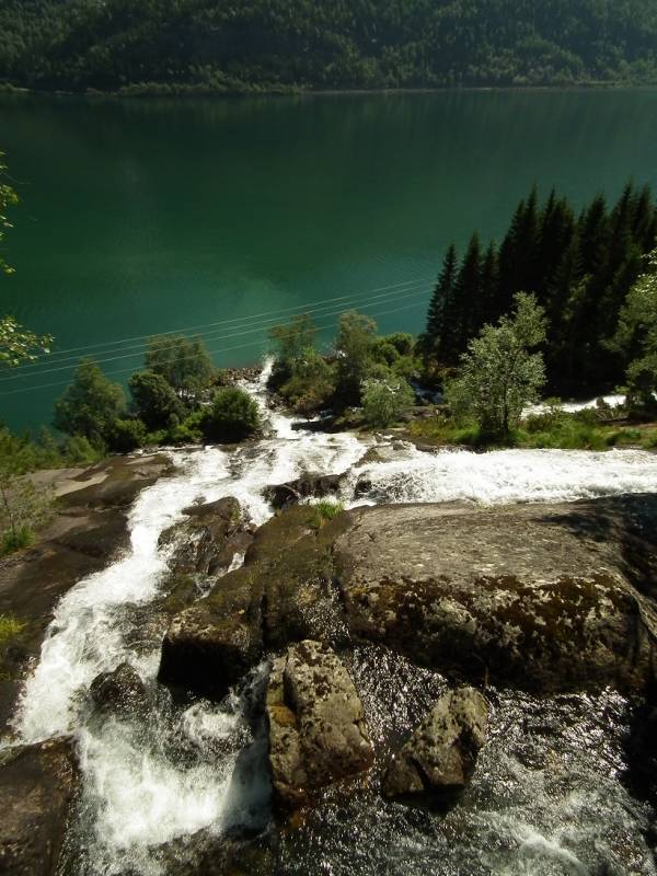 Żanetko, Nelu, Gosiu, Ewo Elu, Ino bardzo dziękuję Wam za wizytę i miłe słowa. Jesienny ogród czasami pięknie wyglądał zimowe dni takie jak teraz ze śniegiem też są ładne ale już z utęsknieniem oczekuję wiosny i lata. Pomalutku snuję wiosenne plany ale czy uda mi się coś zrealizować to czas pokaże, postaram się o nich też na bieżąco pisać. Na dzień dzisiejszy nie mam żadnych ogrodowych fotek, bo wcale ich nie robię ale kiedyś obiecałam że w zimie zdam relację z mojej wycieczki do Norwegii. Jak już pewnie pisałam mieszkaliśmy na kempingu w Oddzie. Kemping położony nad jeziorem Sandvinvatent pomiędzy Parkami Narodowymi Folgefonna i Hardangervidda. Zaś sama Odda to małe miasteczko nad fiordem. Ponieważ lądowaliśmy w Oslo to przez całą noc jechaliśmy do Oddy, tam odsypianie i pierwsze zwiedzanie miasteczka a wieczorem zrobiliśmy sobie krótką wycieczkę po górach obok kempingu