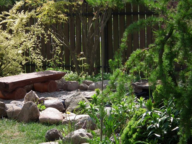 Jolu ławeczka nad oczkiem już jest więc zapraszam, jak widzisz ja mam tyle roboty nie sama nie wiem w co ręce włożyć. W weekend majowy przez dwa dni była u mnie mama i wyplewiła mi część rabat i skalniak także dużo mi pomogła, ale jeszcze sporo pracy przede mną. Co nie znaczy że nie będę miała czasu napić się kawki jak przyjedziesz.