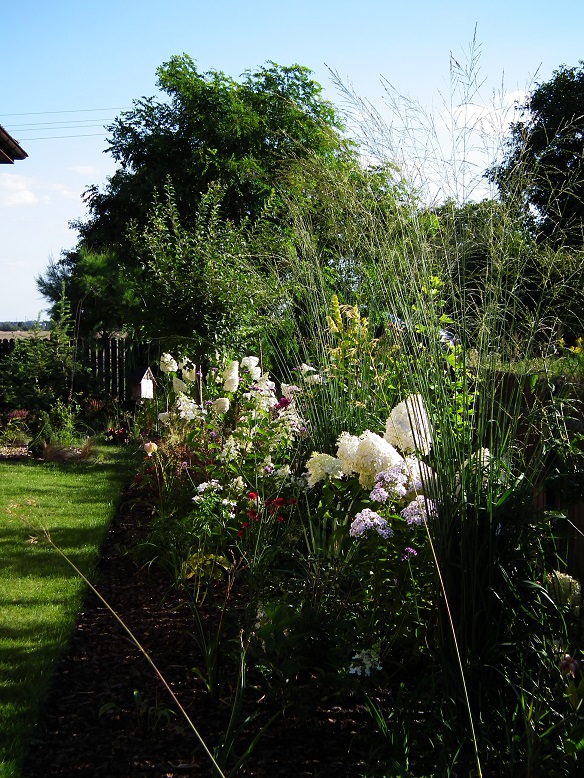 Ina ta rabat a tylko troszkę przerobiona ale teraz znacznie bardziej mi się podoba. Dziś właśnie naocznie oglądałam hortensję u Marty i na początku stwierdziłam że jednak ją zostawię tam ale teraz mam już dla niej lepsze miejsce tylko że teraz nie mam pomysłu jaką hortensję posadzić w jej miejsce